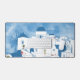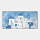 Une belle aquarelle illustration du paysage et de l'architecture de Santorin Grèce. Un design sur le thème de la Grèce bleue et blanche avec une belle vue sur les îles grecques. Un design parfait pour tous ceux qui aiment voyager, aller en vacances et aime visiter les destinations méditerranéennes comme Oia et Fira de Santorin, Grèce.