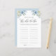 Quel âge avait la future mariée ? Ajoutez cette carte de jeu de douche botanique à votre événement. Il présente des illustrations aquarelle de roses blancs et bleus et des pivoines avec un accent verdoyant. Personnalisez en ajoutant des textes. Cette carte de jeu à photographie florale est parfaite pour les douches nuptiales et les baby showers.
