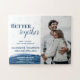 Moderne, Bleu, Vert, Aéré, Contemporain mariage personnalisé enregistrer le puzzle de date. Annoncez votre fiançailles et demandez à vos invités d'enregistrer votre date de mariage spéciale avec ce puzzle photo moderne et unique de date. Doté de traits de brosse bleu aquarelle. Customisez la photo, la date du mariage, l'emplacement, les noms de mariée et de mariée et le site du mariage (tout le texte est entièrement personnalisable). "Mieux ensemble" puzzle que vos invités apprécieront de mettre ensemble et chérir. Parfait pour un couple créatif.