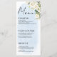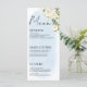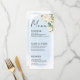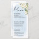 Ajoutez une touche d'élégance à votre table d'accueil avec cette carte de Mariage Blue Watercolor et White Rose. Doté d'un arrière - plan d'aquarelle bleu doux aux fines fleurs blanches, cette carte sert de menu et de carte de nom pour chaque établissement. Entièrement modifiable pour personnaliser les éléments de menu et les noms d'invités, parfait pour un paysage de table mariage cohésif et raffiné.