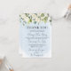 Montrez votre appréciation avec style grâce à cette carte de Merci en Aquarelle Bleue et Rose Blanche. Doté d'un arrière - plan d'aquarelle bleu doux et de délicats accents de rose blanche, cette carte se trouve dans le décor de chaque hôte. Ajoutez un court message de remerciement ou personnalisez avec des noms d'invités pour créer une touche chaleureuse et coordonnée à votre décor de réception.