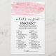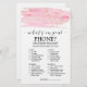 Ce jeu d'aquarelle blush & or "What's in your phone" est parfait pour une douche ou un baby shower à thème romantique et moderne. Le design féminin luxueux est doté d'une texture d'aquarelle rose pâle avec un éclat de poussière de parties scintillant en faux or et une police de script de calligraphie élégante. Remarque : Ce design ne comporte pas de véritable parties scintillant en or. C'est un graphisme de haute qualité fait pour ressembler à l'or pétillant.
