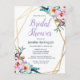 Les fleurs d'aquarelle boho lavande douce dans un cadre double or géométrique présentent des couleurs de lavande, blanc, botanique et plumes. Customisez cette carte postale d'invitation à la douche nuptiale avec vos propres couleurs et polices ou gardez cette typographie populaire comme elle est pour votre commodité.