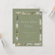 Ce mariage élégant sauve la date dispose d'une belle aquarelle sur fond de verdure luxuriante dans les tons d'olivier, de sauge et de vert de la forêt. Le design classique est parfait pour faire connaître votre journée spéciale à votre famille et à vos amis. Ce design peut être facilement personnalisé et customisé pour ajouter vos détails personnels et flair à cette sauvegarde la date. Découvrez le reste de la collection Botanical Watercolor Greenery pour les invitations de coordination et plus