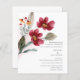 Aquarelle bordeaux faire-part de mariage à budget floral avec grand bordeaux rustique sauvage peint en fleur. Le texte détaillant le mariage est aligné au bas de la carte en gris qui se marie très bien avec les fleurs d'aquarelle rustique.