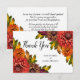 La vie de votre être aimé était belle et devrait être célébrée. Dites merci aux amis et à la famille pour leur attention avec notre design floral de chute d'aquarelle originale par Holiday Hearts Designs (tous droits réservés). L'expression avant est "Merci" et "de la famille de. .. ". Le dos contient un message de deux paragraphes : l'un pour express votre gratitude et l'autre pour demander la célébration de sa vie. Les deux peuvent être personnalisées ou modifiées selon vos besoins pour atteindre votre expression unique. Ils ont dit : "En notre temps de tristesse, c'est avec une profonde gratitude que nous avons express notre reconnaissance pour vos paroles aimables et votre attention." et "Au fil du temps, nous espérons que vous vous souviendrez d'elle avec affection et célébrerez la beauté qui a été sa vie."