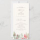 Guidez vos invités avec notre programme de mariage. Un arrière - plan beige, agrémenté de verdure hivernale, de baies sèches, de cônes de pins et de feuillage, sert de décor à une belle typographie serif et scriptée.