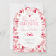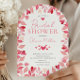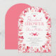 Invitation à la douche nuptiale avec cadre de coeur feuillu rose et rouge sur un arrière - plan blanc Retournez notre doux invitation à voir un dos de coordination.