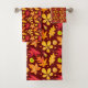 Belle motif saisonnière présente une variété de feuilles d'automne des illustrations d'aquarelle réaliste en jaune doré, orange et rouge, sur arrière - plan rouge foncé.
