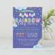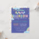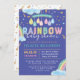 Aquarelle sexy, colorée et capricieuse neutre "sur l'arc-en-ciel" baby shower invitation design dans la palette colorée de rose, bleu, turquoise, citron vert, orange et violet. Le design comprend une belle aquarelle arc-en-ciel et l'illustration des nuages avec des confettis colorés, un motif de pois pluviaux avec de faux accents de feuille d'or pour ajouter un look magique à nouveau un arrière - plan violet profond. Le revers de l'invitation est composé d'un confetti coloré, d'un motif de pois de pluie avec des accents de feuille d'or faux, qui complète magnifiquement l'illustration avant. Toutes les illustrations contenues dans cette invitation magique baby shower couleur arc-en-ciel aquarelle sont dessinées à la main par Moodthology. Vous pouvez customiser la taille du texte, la couleur du texte, la police et la mise en page de votre propre préférence de conception personnelle.