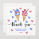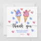Garçon ou fille. Le genre mignon et moderne révèle la carte d'invitation de fête avec l'aquarelle illustration de crème glacée dans les cônes gaufres en rose et bleu. motif Arrière - plan aux coeurs bleu et rose. "C'est quoi le scoop ?" Éléments correspondants disponibles.