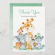 Cette adorable Carte de remerciements avec de mignons petits animaux safari de la jungle de bébé aquarelle avec des feuilles et des fruits de la jungle est parfait pour tout baby shower ou événement spécial dans le style. Personnalisez avec votre propre texte spécial, et utilisez-le pour la fête ou l'événement de votre choix. Objets correspondants, y compris invitation baby shower, timbres-poste, album photo, aimant, étiquette de adresse, affiche, bannière, cartes de remerciements, autocollants de remerciement et d'autres sont également disponibles dans notre boutique.