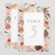 Ce panneau de numéro de table a des orchidées aquarelles, roses, feuilles de palmiers et brindilles dans une palette de couleurs neutres. Le panneau est recto verso. Parfait pour les mariages d'automne !