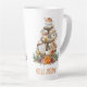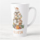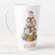 Un joli plateau à carreaux aquarelle chargé de citrouilles et de tasses à café avec des bâtons d'épices, avec des aiguilles de pin et des fleurs d'automne. Quand le temps fait froid et que l'automne est là, cette grande tasse de latte est prête pour ces lattes citrouilles épicés qui ont vraiment touché l'endroit !