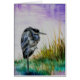 Un héron de grand bleu se repose sur un pied dans cette aquarelle vive.