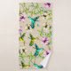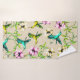 Décorez votre salle de bain avec ces belles serviettes de bain fleuries colibris. Elles sont ornées de colibris d'aquarelle bleu, vert et jaune entourés d'élégantes fleurs violettes du jardin et de détails verts feuillus.