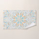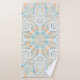 Plage Escape aquarelle serviette de bain mandala dans des tons doux d'aqua, turquoise, gris et corail clair.