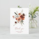 Boho mariage carte de remerciements dispose d'un bouquet d'aquarelle de fleurs dans les tons de terre cuite avec merci en écriture manuscrite. Personnalisez avec les noms du couple mariage et la date du mariage. L'envers est facilement personnalisable avec votre photo préférée et un message personnel