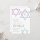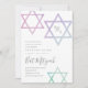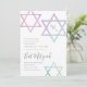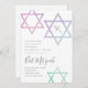 Un design d'invitation Bat mitzvah moderne et doux de Stacey Meacham avec des étoiles d'aquarelle à l'ombre et un monogramme initial de trois.