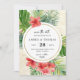 Magnifique feuillage tropical enregistrer la carte de date avec plumeria, fan palm, areca palm, monstera feuilles et autres feuillages tropicaux avec vos détails mariages en police moderne.La carte peut être facilement customisé pour tout événement en ajoutant vos détails d'événement, style de police, taille & couleur de police, et le libellé de votre choix en cliquant sur le bouton "Personnaliser".