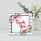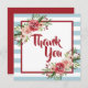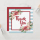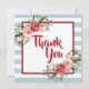 Carte de remerciements moderne de noël avec des fleurs d'hiver aquarelle et arrière - plan rayures bleues.