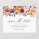 Réservez la date! Annoncez votre date de mariage à votre famille et à vos amis avec ce floral enregistrer la carte de date. Il présente une guirlande fleurie couleur aquarelle ou des fleurs d'automne bordeaux, rose et orange. Personnalisez en ajoutant les noms, la date, le lieu et d'autres détails. Ces automne, sauf les cartes datées sont parfaites pour les mariages de automne.