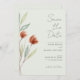 Fleurs d'aquarelle rouge avec feuilles vert sauge sur un arrière - plan personnalisé vert pâle personnalisable enregistrer l'invitation de date.