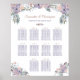 De beaux bouquets de fleurs fleurs sauvages d'aquarelle dans les tons lavande, violet, violet, pêche, roux, bleu poussiéreux et vert et accentué avec un titre en cuivre pour un tableau de sièges jusqu'à 10 tables et 12 invités par table. Contactez le concepteur si vous souhaitez que ce design soit modifié ou sur un autre produit.