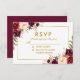 Aquarelle Floral Bourgogne Marsala Gold Wedding Carte RSVP - Bourgogne Retour