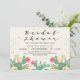 Vous cherchez une invitation pour une douche de cactus ou de fiesta? Ce design présente des cactus, des brindilles et des fleurs sur un arrière - plan de papier aquarelle scanné. J'ai aussi ajouté une police de calligraphie moderne pour le titre. C'est un design élégant mais moderne qui convient à quelqu'un qui aime les invitations aquarelles. Cette invitation à la douche nuptiale de cactus aquarelle est prête à être personnalisée.