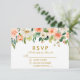 Aquarelle Floral Coral Gold Wedding Carte RSVP