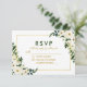 Aquarelle Floral Vert Blanc Mariage Carte RSVP - Cadre Or