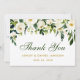 Aquarelle Floral Vert Blanc Or Mariage Carte de remerciements - Vert & Or Script