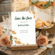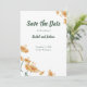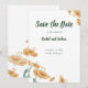 Annoncez votre jour spécial avec l'élégance sans effort de cette carte Save the Date bohème. Avec des fleurs sauvages délicates à l'aquarelle dans des tons chauds de pêche et d'orange doux, magnifiquement encadrées par une typographie terreuse de couleur sauge.