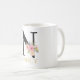 Lettre N monogramme avec fleurs d'aquarelle et feuille sur une lettre noire. Parfait pour un usage personnel et de don avec personnalisation de nom.
