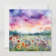 Aquarelle de fleurs avec ciel bleu nuageux.