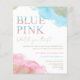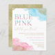Un sexe baby shower révèle l'invitation de la fête. Sur un arrière - plan blanc, d'élégantes aquarelles bleues et roses sont décorées de parties scintillant dorée. Le texte de typographie dit bleu rose que pensez-vous ? Personnalisez en éditant avec vos détails d'événement uniques.