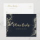 Cette carte postale rsvp de couleur or aquarelle est parfaite pour un mariage rustique. Le design est orné d'une tache d'or peinte à la main dans un arrière - plan bleu foncé.
