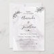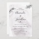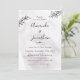 Faire-part de mariage minimaliste avec Aquarelle Grise et dessin de trait de feuilles.