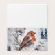 Carte Vacances Robin Hiver Américain Aquarelle. Le design présente une aquarelle gris bleu scène hivernale des arbres de Noël, montagnes, Robin américain avec baies sèches. Elégante texture arrière - plan douce. Personnalisez-le avec votre nom de famille. Pour plus de personnalisation, n'hésitez pas à me contacter à kbasandra@gmail.com .