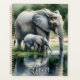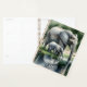 Carnet double face. Une douce aquarelle d'air douce illustration d'un éléphant maman et de son bébé en train de boire dans un étang à la réflexion mignonne. Le dos a un éléphant dans la savane.