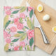 Aquarelle La Rosa Whimsy Gold Motif Floral Serviette de cuisine avec un rose peint à la main et imprimé botanique