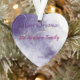 Un élégant souvenir de Noël familial spécial avec toute votre famille, ce beau ornement en forme de coeur est revêtu de marbre aquarelle. Personnalisez avec votre nom de famille et l'année.
