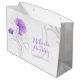 Donnez vos cadeaux de mariage dans ce sac cadeau spécial mariage. Parfait pour ajouter une touche personnalisée à vos cadeaux de mariage à votre fête de mariage ou lors d'un don à la mariée et au marié. Un sac cadeau fleur sauvage d'aquarelle tourbillonne en blanc, violet et gris. Correspond à une gamme d'autres produits mariages dans la gamme tourbillon fleur sauvage aquarelle. Customisez / personnalisez ces sacs cadeaux avec vos noms de mariée et de mariée des deux côtés. Art original et design d'aquarelle par Sarah Trett.