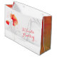 Donnez vos cadeaux de mariage dans ce sac cadeau spécial mariage. Parfait pour ajouter une touche personnalisée à vos cadeaux de mariage à votre fête de mariage ou lors d'un don à la mariée et au marié. Un sac cadeau fleur sauvage d'aquarelle tourbillonne en blanc, orange rouge et gris. Correspond à une gamme d'autres produits mariages dans la gamme tourbillon fleur sauvage aquarelle. Customisez / personnalisez ces sacs cadeaux avec vos noms de mariée et de mariée des deux côtés. Art original et design d'aquarelle par Sarah Trett.