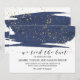 Ces cartes de faire-part couleur marine et or elopement ont un beau design élégant. Sur la carte on peut lire "Nous avons lié le noeud !". Cet abstrait design nocturne étoilé présente une brosse dramatique d'aquarelle bleu marine superposée d'une belle parties scintillant en faux or. Remarque : Ce design ne comporte pas de véritable parties scintillant en or. C'est un graphisme de haute qualité fait pour ressembler à l'or pétillant.