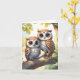 Aquarelle Mignon Kawaii Chibi Hiboux Carte de Vœux