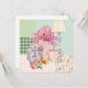 Jolie aquarelle de style collage, avec des illustrations florales et aquarelles en bleu, vert et rose.