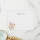Une carte de remerciements simple et élégante avec un effet papier arrière - plan de part et d'autre. Dans le coin inférieur gauche se trouve une jolie illustration florale aquarelle et en haut de la carte, dans la typographie de script gris, est le Merci, mais cela peut facilement être customisé à votre propre texte.