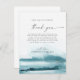 Cet aquarelle moderne turquoise grâce à la carte de réception est parfait pour un mariage contemporain élégant. La collection design minimaliste, classique et élégante présente de simples touches de peinture couleur à l'eau dans de jolis tons bijoux. Placez ces cartes à la table de chaque invité à la réception de votre mariage. Personnalisez la carte avec vos noms et un message de remerciement spécial.
